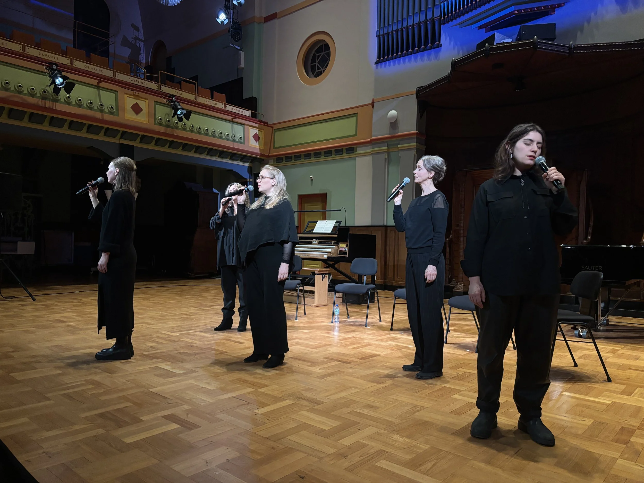 In Rooms & Rituals each singer’s extended vocal techniques, individuality and timbre results in a unique quality to the groups collective tone. Through the use of their unique effect controllers “Maccatrols”, they create wide electroacoustic soundscapes, subtle noise, hauntingly beautiful chorales, and ambient beats. Free improvisation plays a vital part in their concerts, but also incorporating original compositions from the group members and music written for the ensemble by composers such as Jon Balke, Ståle Storløkken and Christian Wallumrød.